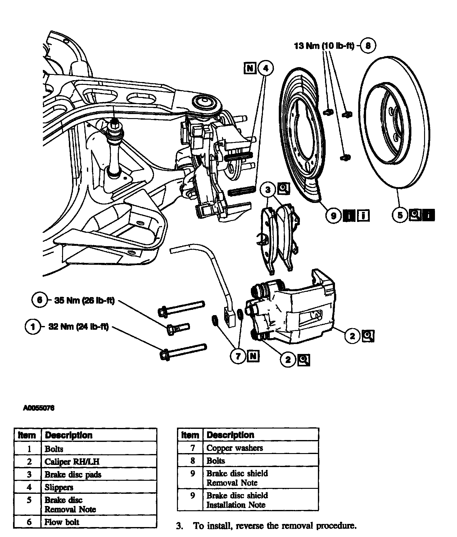 Item 9: Brake Disc Shield Removal Note