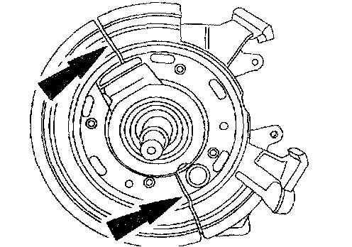 1. If the brake disc binds on the parking brake shoe and lining, remove the adjustment hole access plug and contract the parking brake shoe and lining.