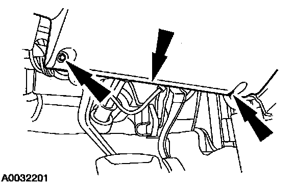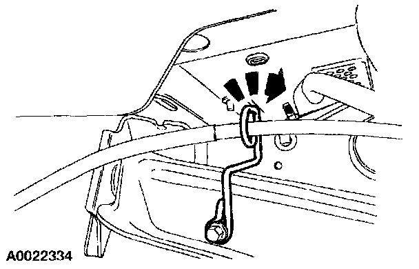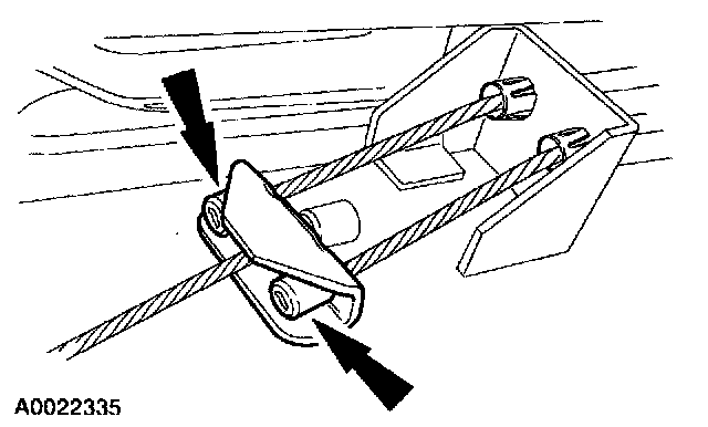 3. Rotate the rear parking brake cable out of the parking brake cable and conduit wire form retainer.