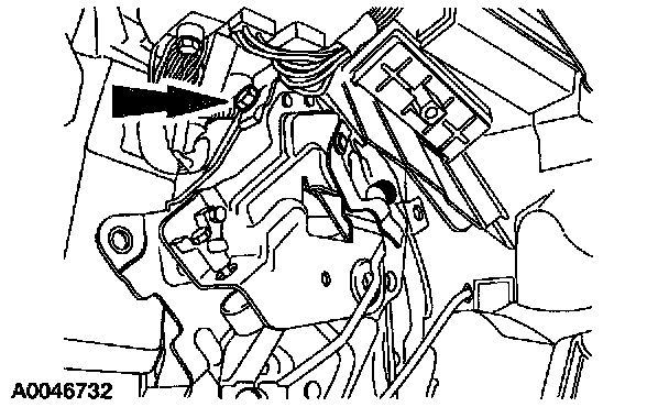 6. Remove the screw and position the bracket and bulkhead harness connector aside.
