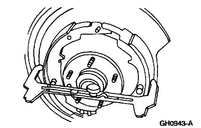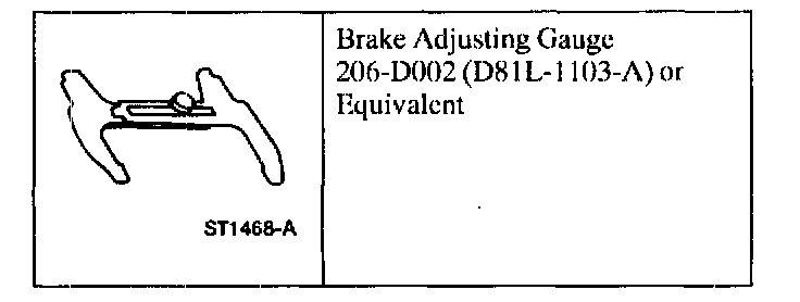^ Use the Brake Adjusting Gauge to measure the inside diameter of the drum position of the rear brake disc. Adjust the parking brake shoe clearance of 107 mm (0.142 inch) less than the inside diameter of the drum portion of the rear brake disc.