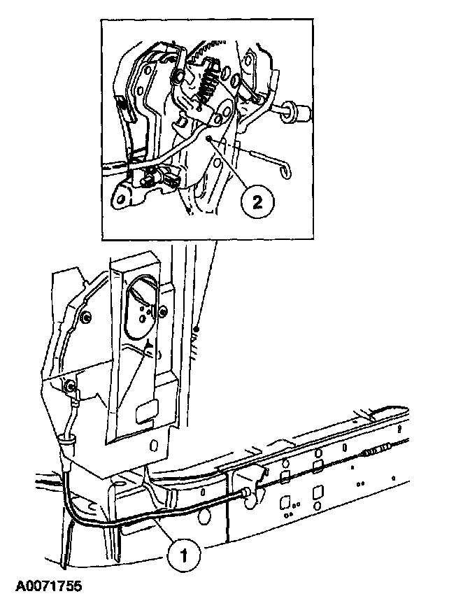 Item 1 and 2: Parking Brake Control and Front Parking Brake Cable Removal Note