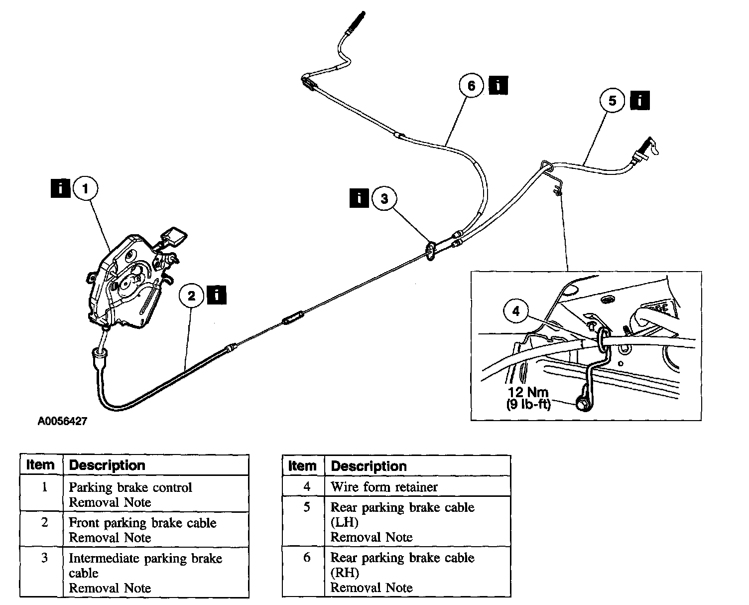 Item 5 and 6: Rear Parking Brake Cable (LH) and (RH) Removal Note