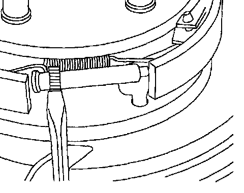 2. Compress the clip and release the parking brake cable from the rear disc brake caliper anchor plate.
