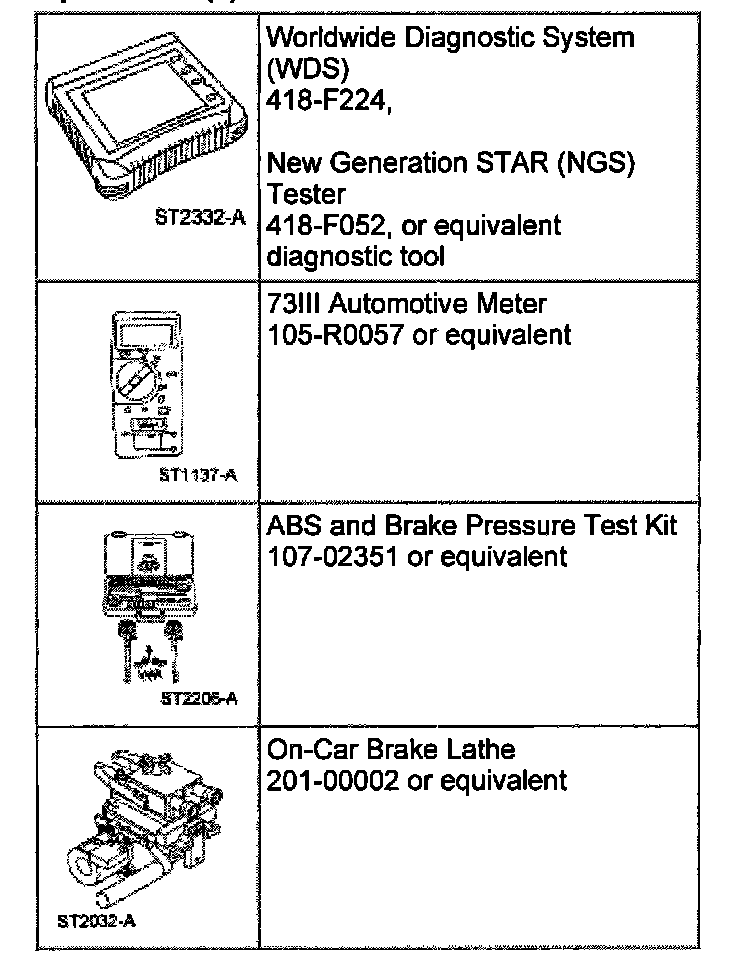 NOTE: Prior to carrying out any diagnosis, make sure the brake warning indicator is functional.