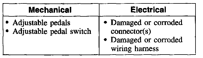 - inspect for binding, damage, correct installation or interference at the brake pedal.