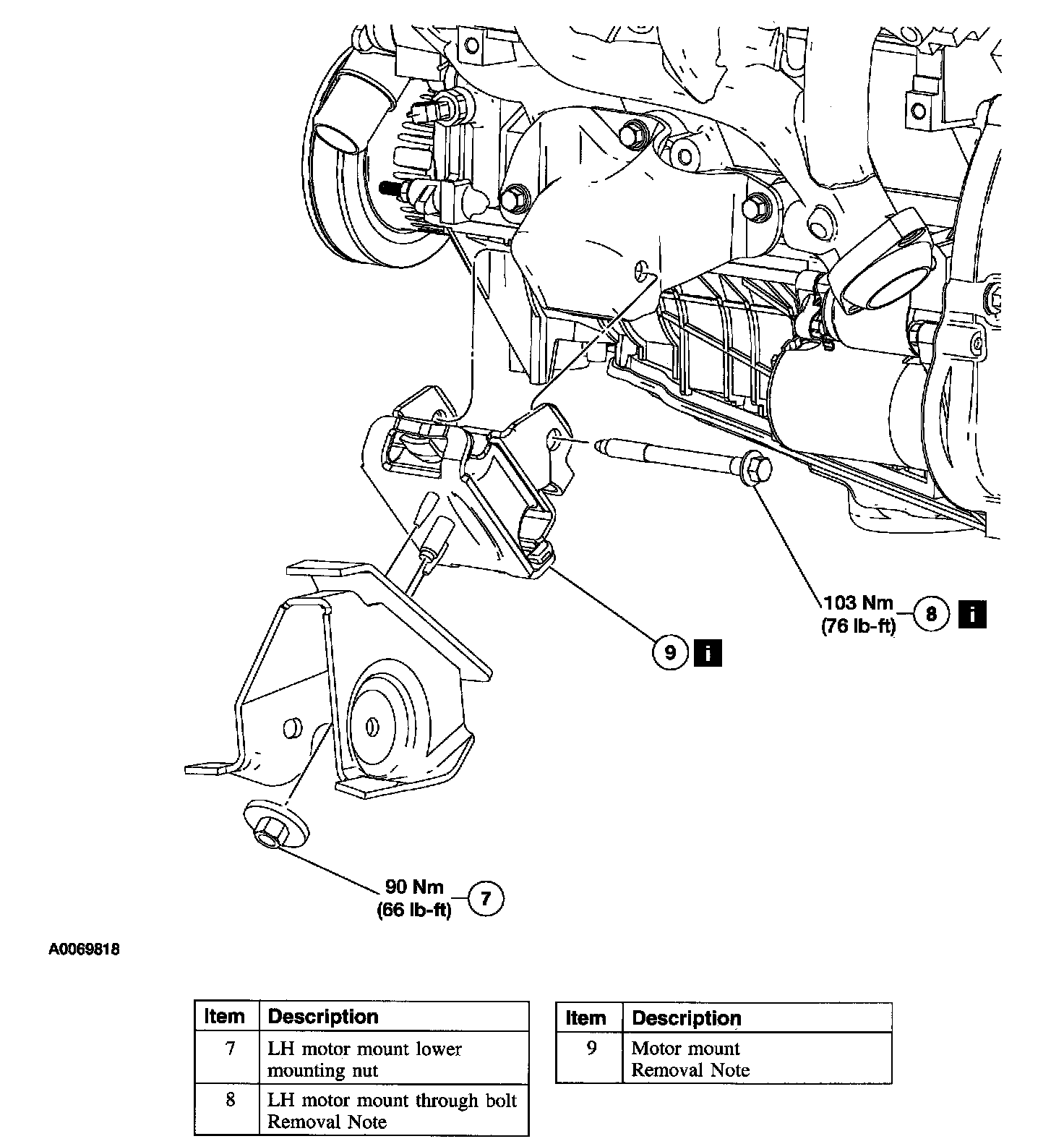 Items 8, 9, 11 and 12: RH and LH Motor Mount and Through Bolt Removal Note