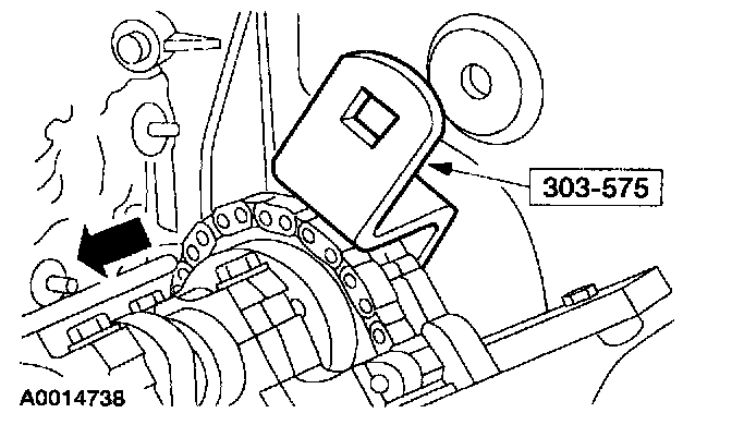 5. CAUTION: The RH camshaft sprocket is a LH threaded bolt.