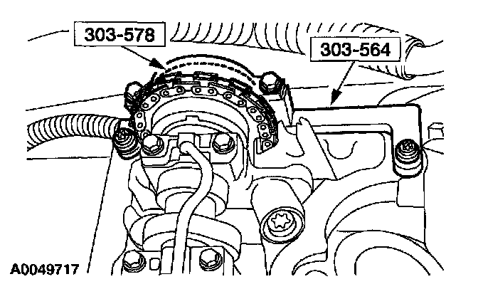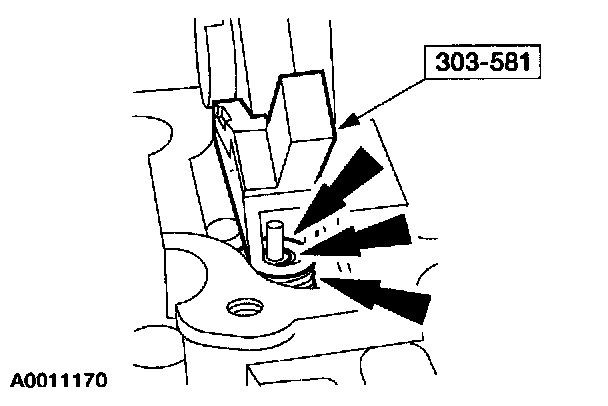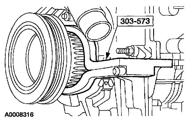 3. NOTE: The special tool must be installed on the damper and should contact the engine block, this positions the piston at TDC.