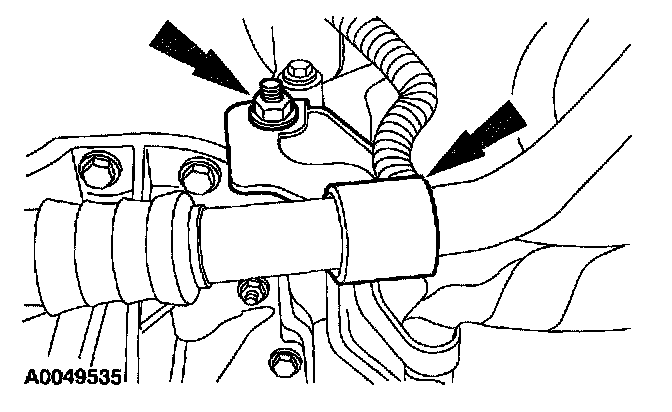 2. Remove the retainer and position the A/C manifold tube bracket aside.