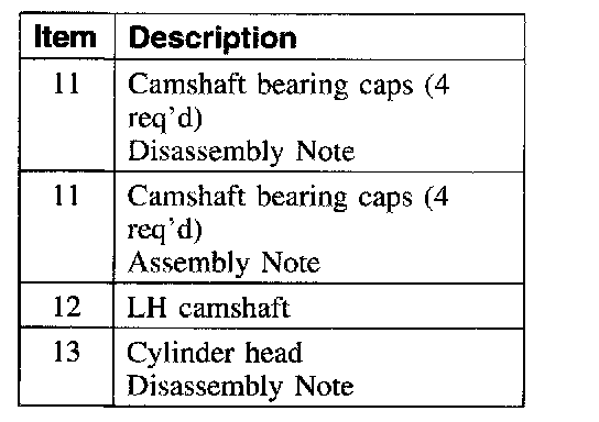 Items 11,10 and 9: Camshaft Bearing Caps, Oil Supply Tube and Camshaft Bearing Cap Mounting Bolts Assembly Note