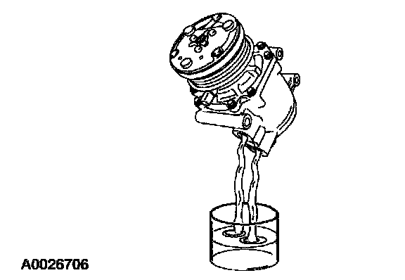 Rotate the A/C compressor shaft six to eight revolutions while collecting oil in a clean measuring device.