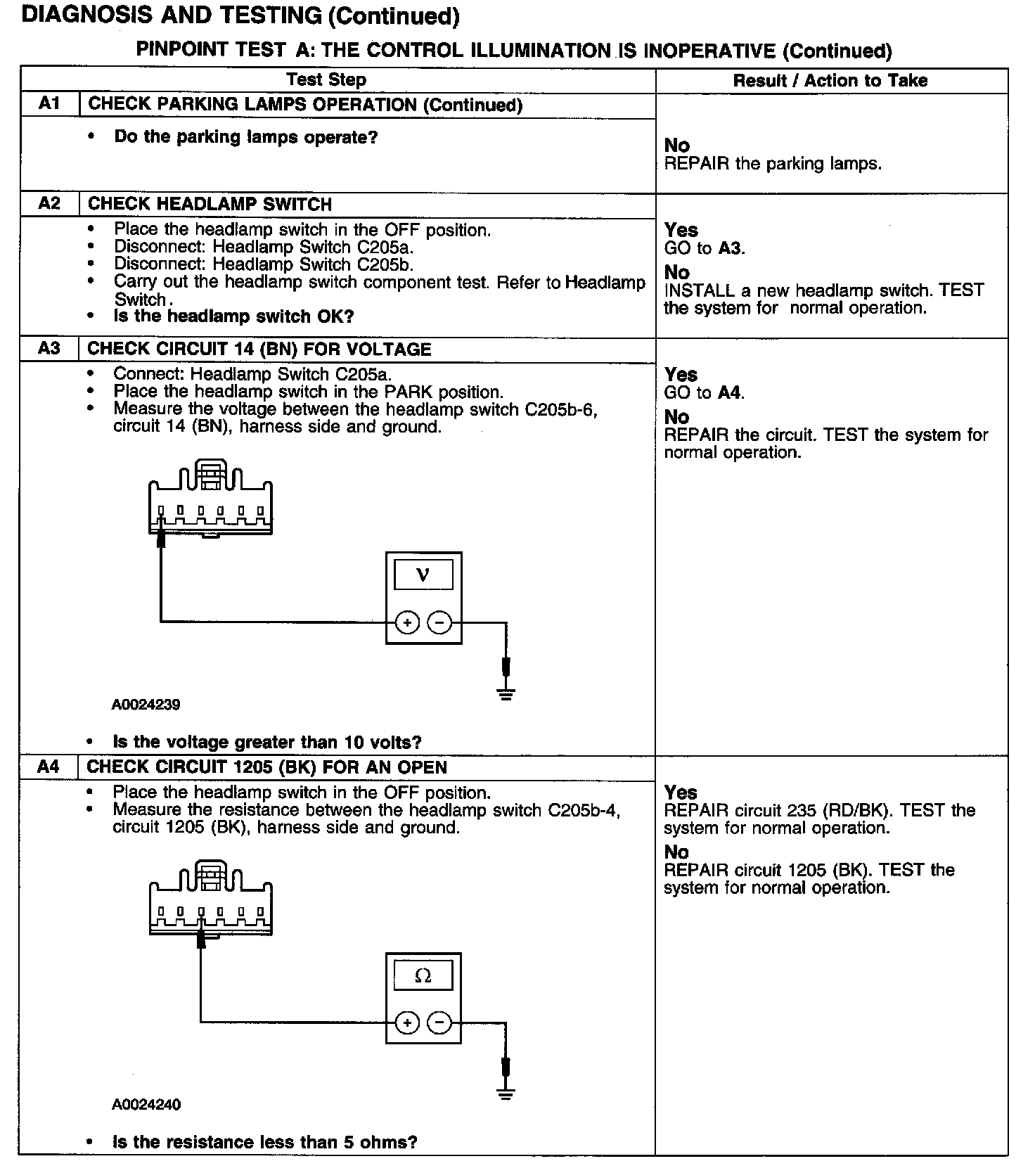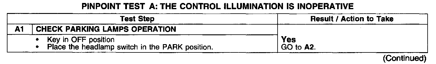 PINPOINT TEST A: THE CONTROL ILLUMINATION IS INOPERATIVETest A1: