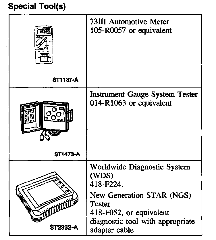 Instrument Panel, Gauges and Warning Indicators: Tools and Equipment