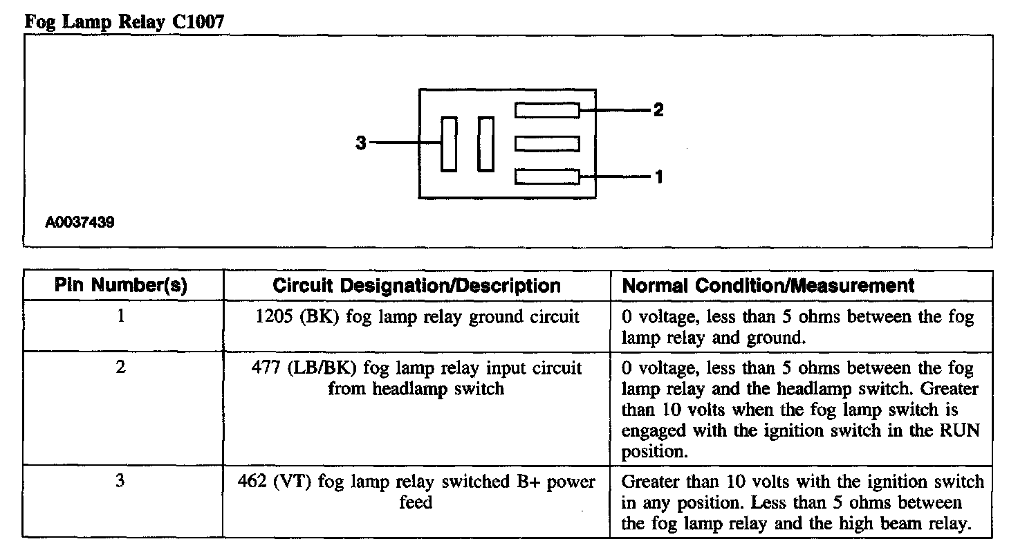Fog Lamp Relay C1007: