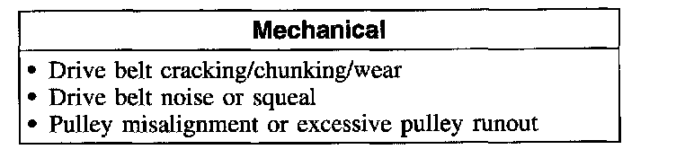 Under severe operating conditions (high temperature, low humidity), drive belt rib cracking can occur at less than 96,000 km (60,000 miles). Drive belt rib cracking (cracks across grooves).