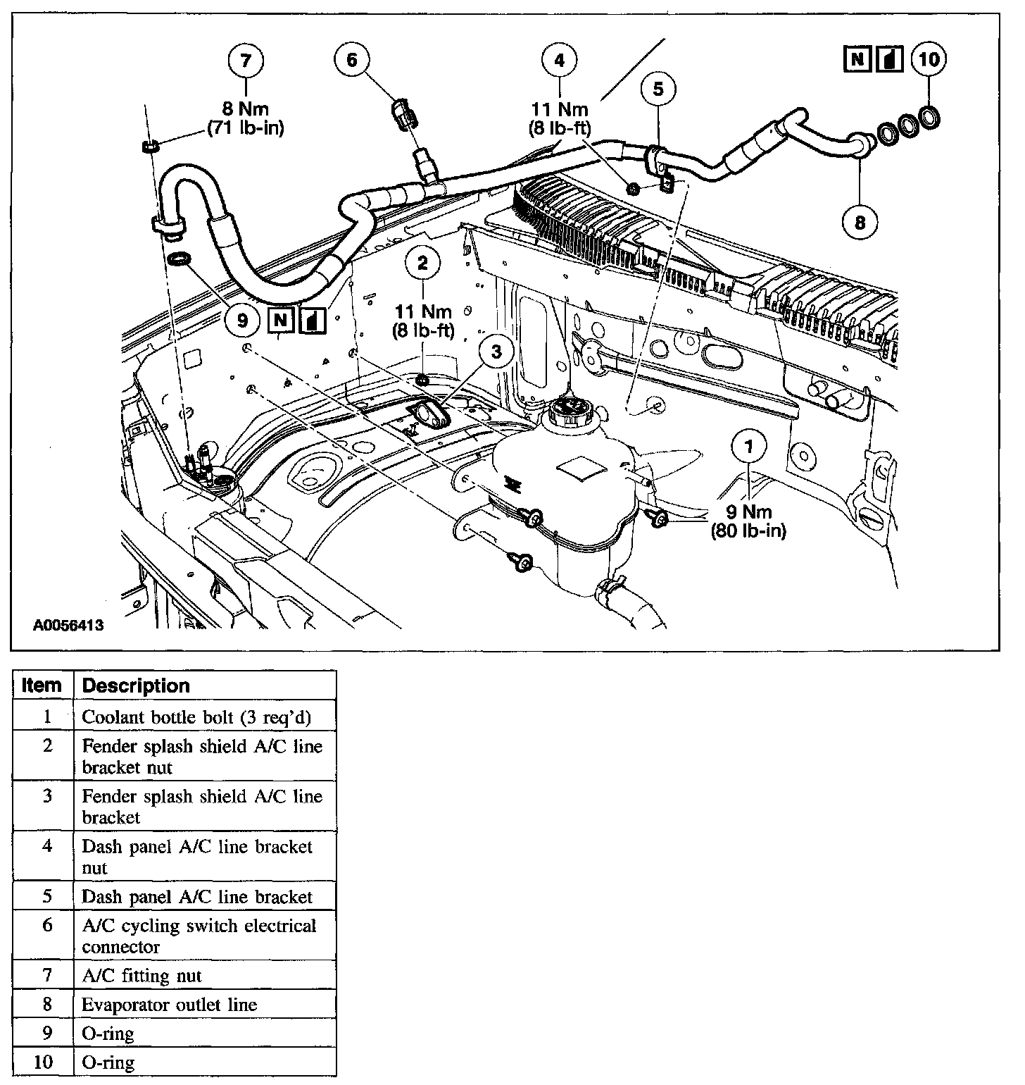 - New O-ring seals, lubricated in clean PAG oil, must be installed before reconnecting any A/C fitting which has been disconnected.