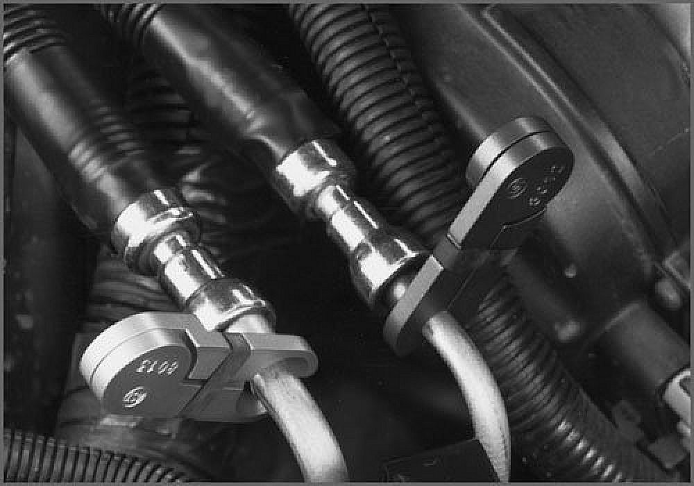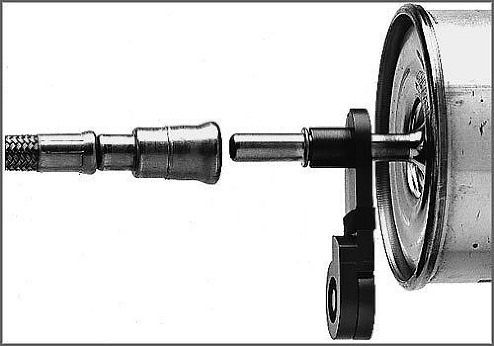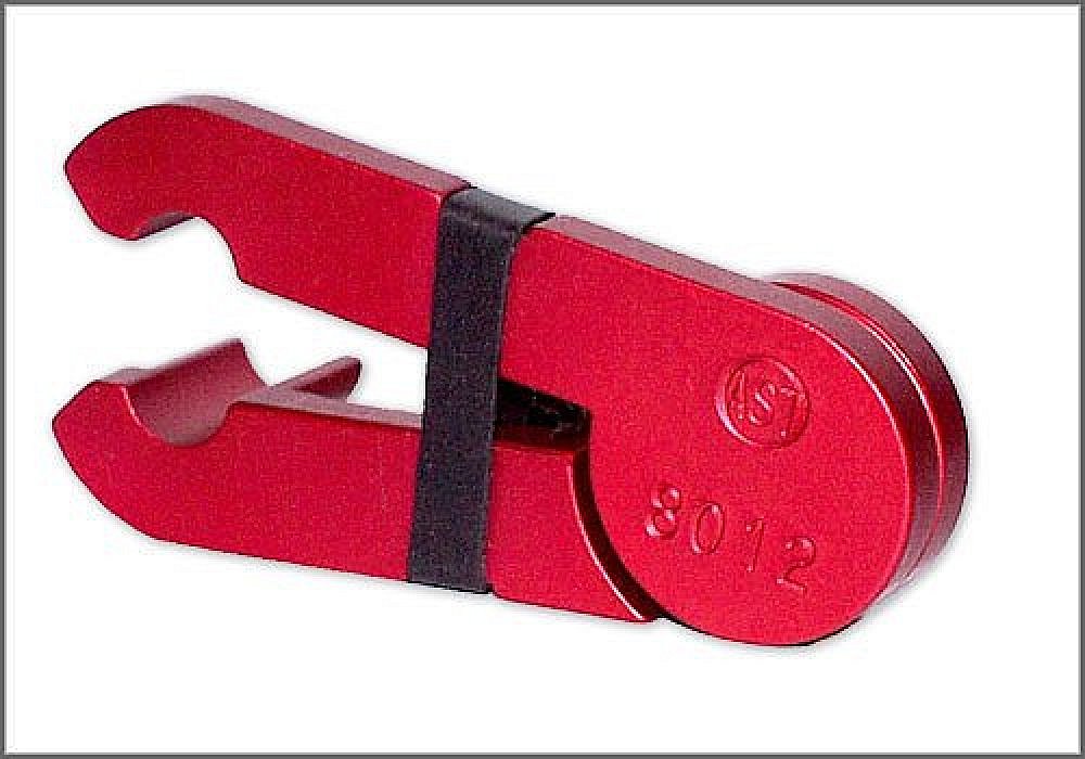 This Fuel Filter Remover is made of red-anodized aluminum and is for the R and R of the fuel filter and 5/16" return line from the fuel pump-sending unit.