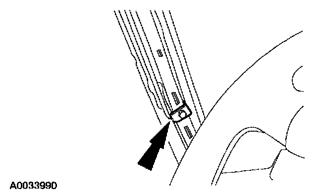 9. Position the A-pillar tether cord. Install the bolt. See the appropriate component removal and installation procedure or Specifications for the correct torque specification.