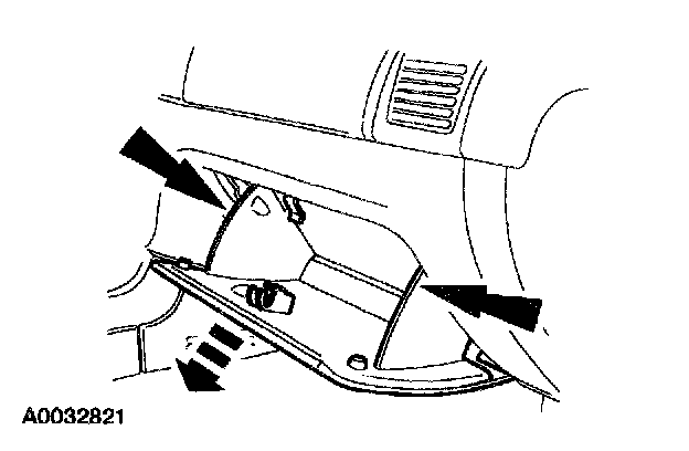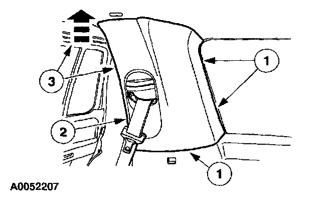 3 Lower the door opening weatherstrip, slide the C-pillar trim panel up, releasing the retainers and remove the C-pillar trim panel.