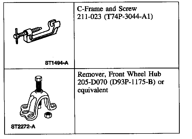 Wheel Bearing, Hub, Knuckle, Upper Arm and Lower Arm-FrontSpecial Tool(s)