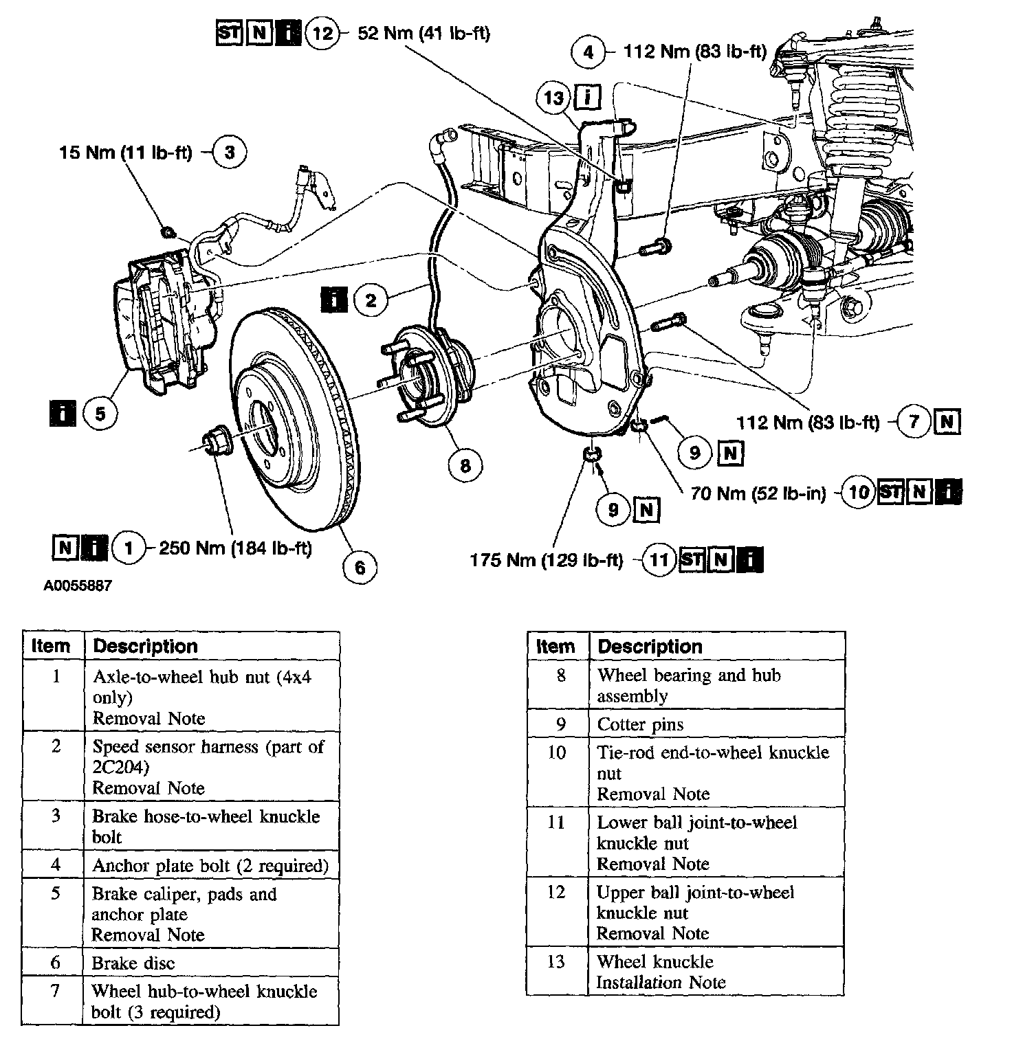 Item 5: Brake Caliper, Pads and Anchor Plate Removal Note