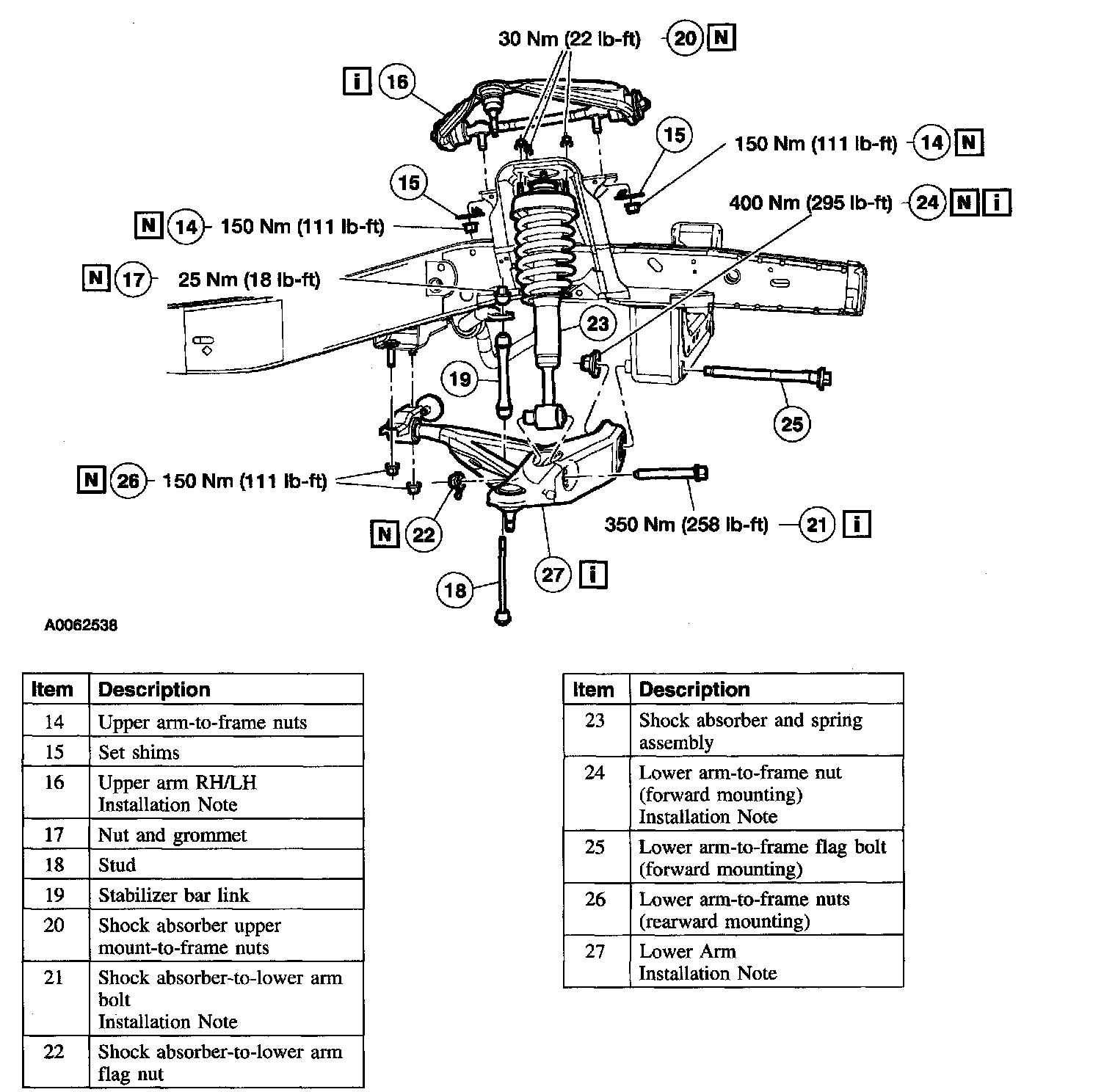 Item 21: Shock Absorber-to-Lower Arm Bolt Installation Note