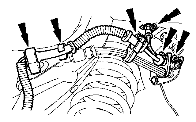 1. CAUTION: Do not allow the brake caliper to hang from the hose or damage to the hose can occur.