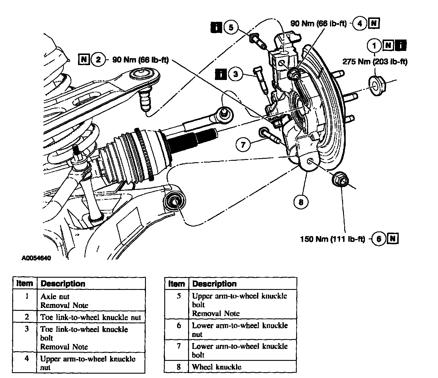 Item 5: Upper Arm-to-Wheel Knuckle Bolt Removal Note