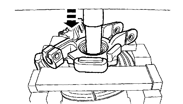 Using the special tool, press the outboard CV joint until it is loose from the hub.