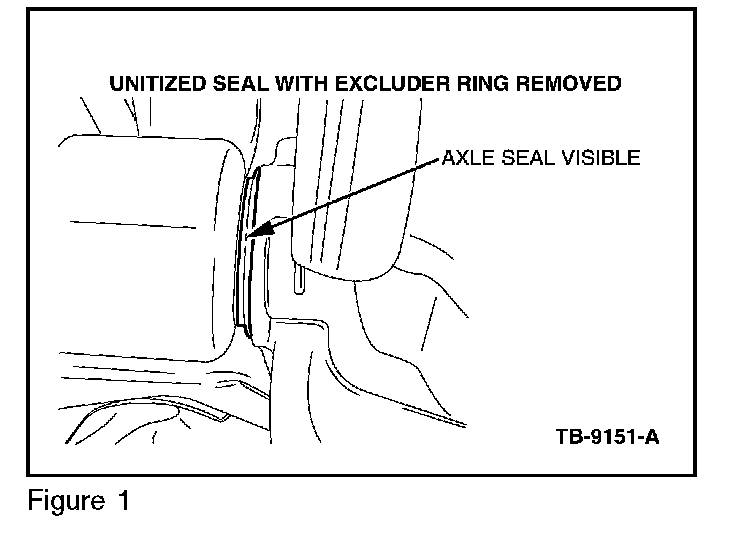 IF SEAL IS OLD DESIGN RADIAL LIP SEAL STYLE, (SEE FIGURES 1 AND 2 TO IDENTIFY RADIAL LIP SEAL) THERE IS NO INTERNAL GREASE PRESENT IN SEAL TO SEPARATE. THIS TSB DOES NOT APPLY. REFER TO WORKSHOP MANUAL DIAGNOSTIC.