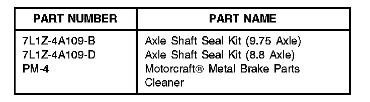 3. Clean axle housing around the seal area using Motorcraft� Metal Brake Parts Cleaner or equivalent cleaner. Wipe lube or oil with rag and let the housing dry.