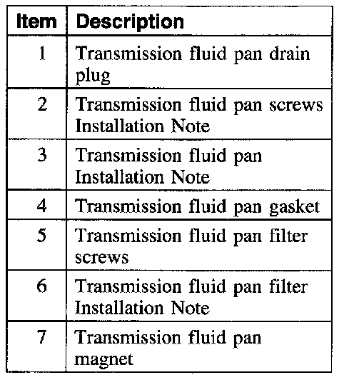 Item 6: Transmission Fluid Pan Filter Installation Note