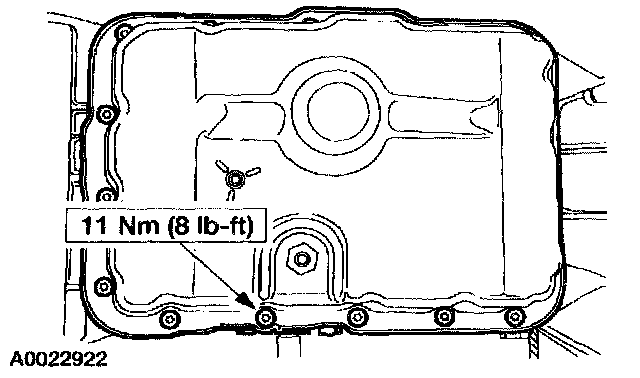 1. Install the transmission fluid pan and gasket and loosely install the screws.