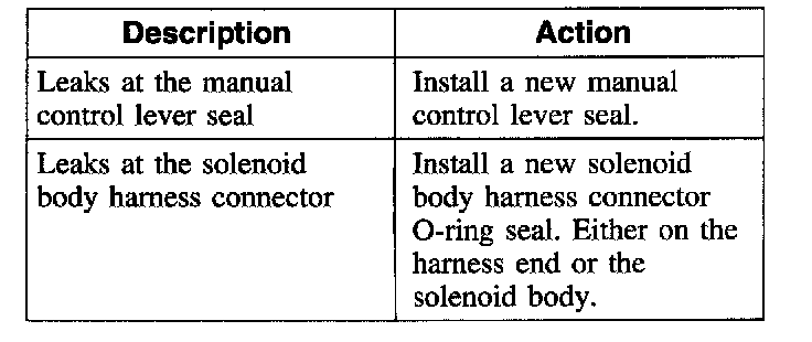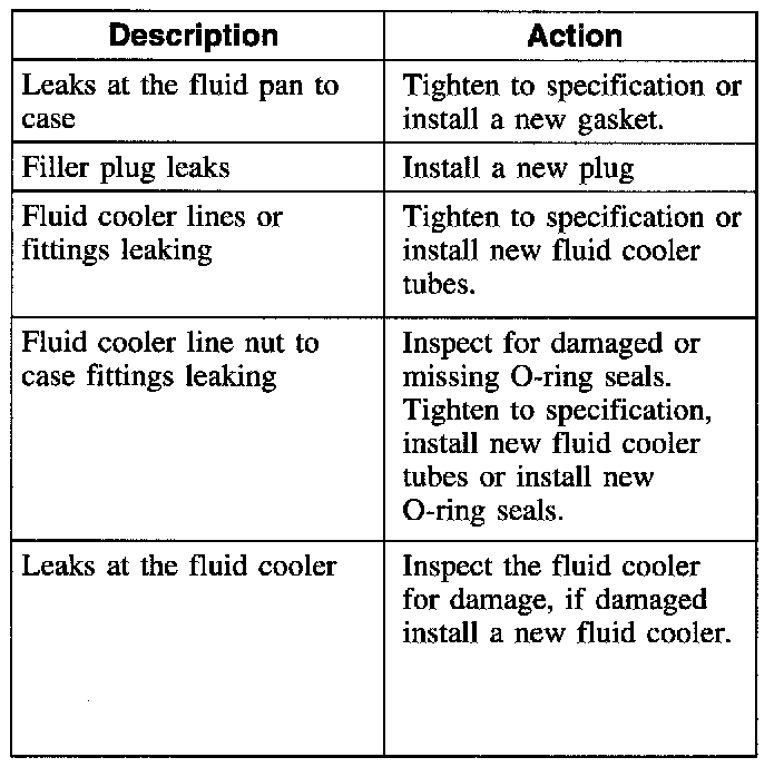 Use the following chart to inspect and correct any external transmission fluid leaks.