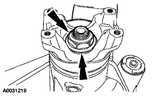 3. Using the special tool to hold the pinion flange, remove and discard the pinion nut and washer.