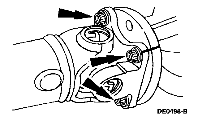 4. CAUTION: Index-mark the driveshaft flange and rear axle pinion flange to maintain initial balance during installation.