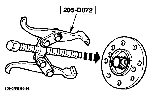2. Using the special tool, remove the rear axle pinion flange.