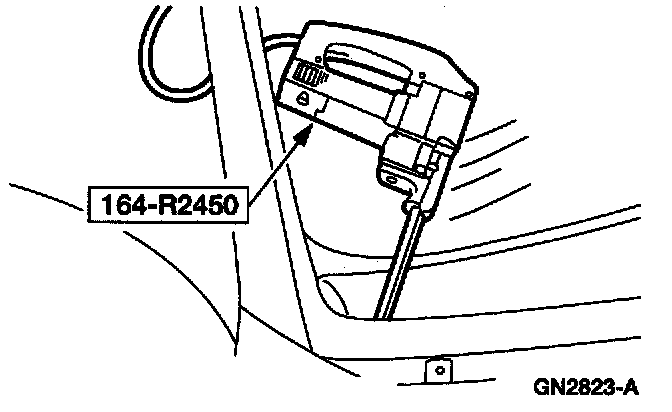 1. Remove right and left side A-pillar trim panels, sun visors and retainers and if equipped overhead console.