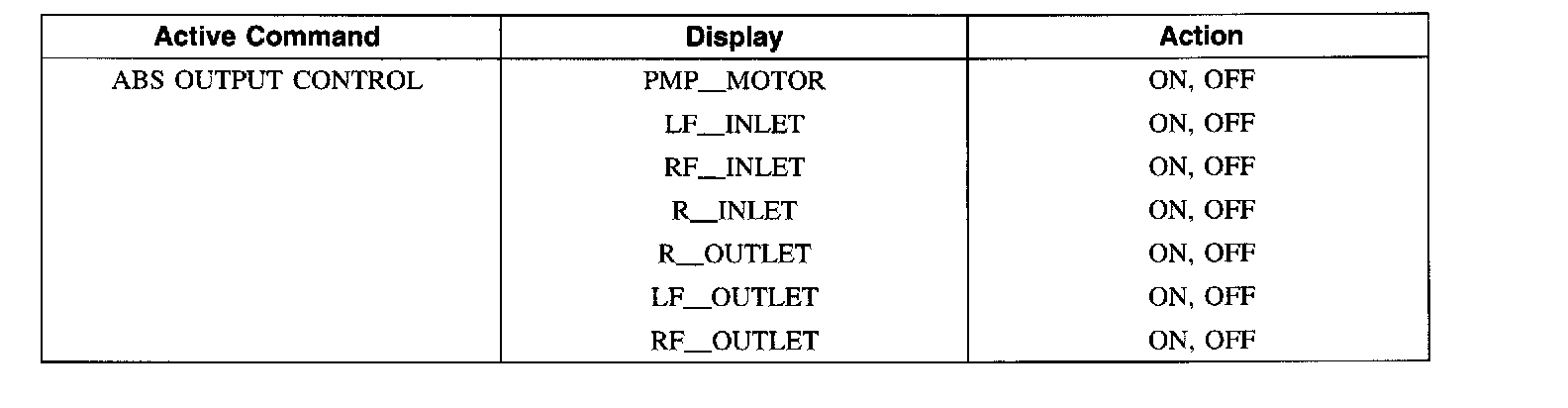 ABS Control Module Active Command Index