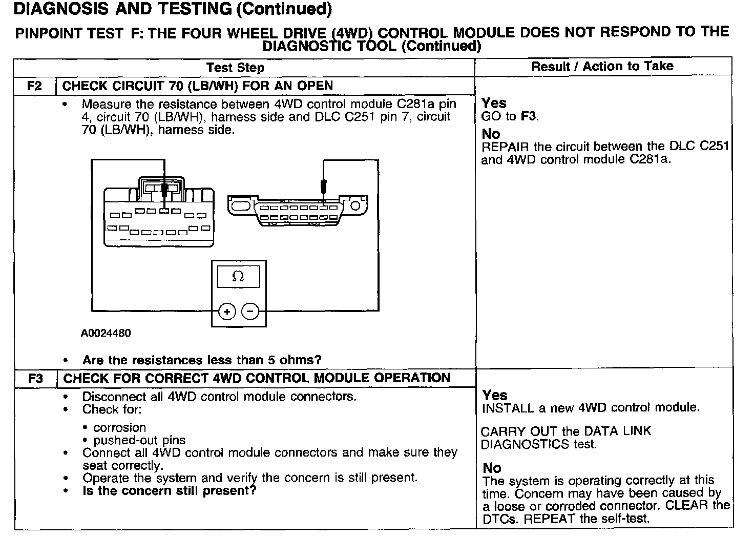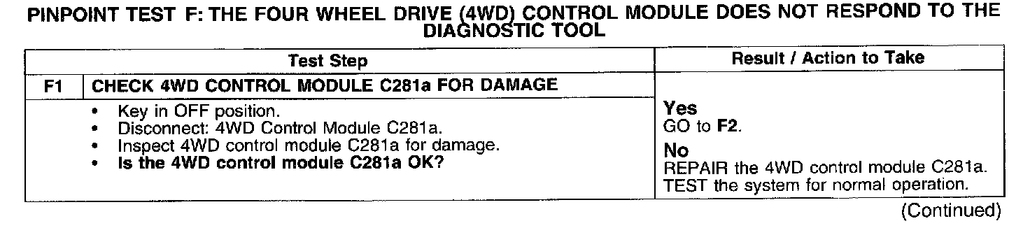 PINPOINT TEST F: THE FOUR WHEEL DRIVE (4WD) CONTROL MODULE DOES NOT RESPOND TO THE DIAGNOSTIC TOOL