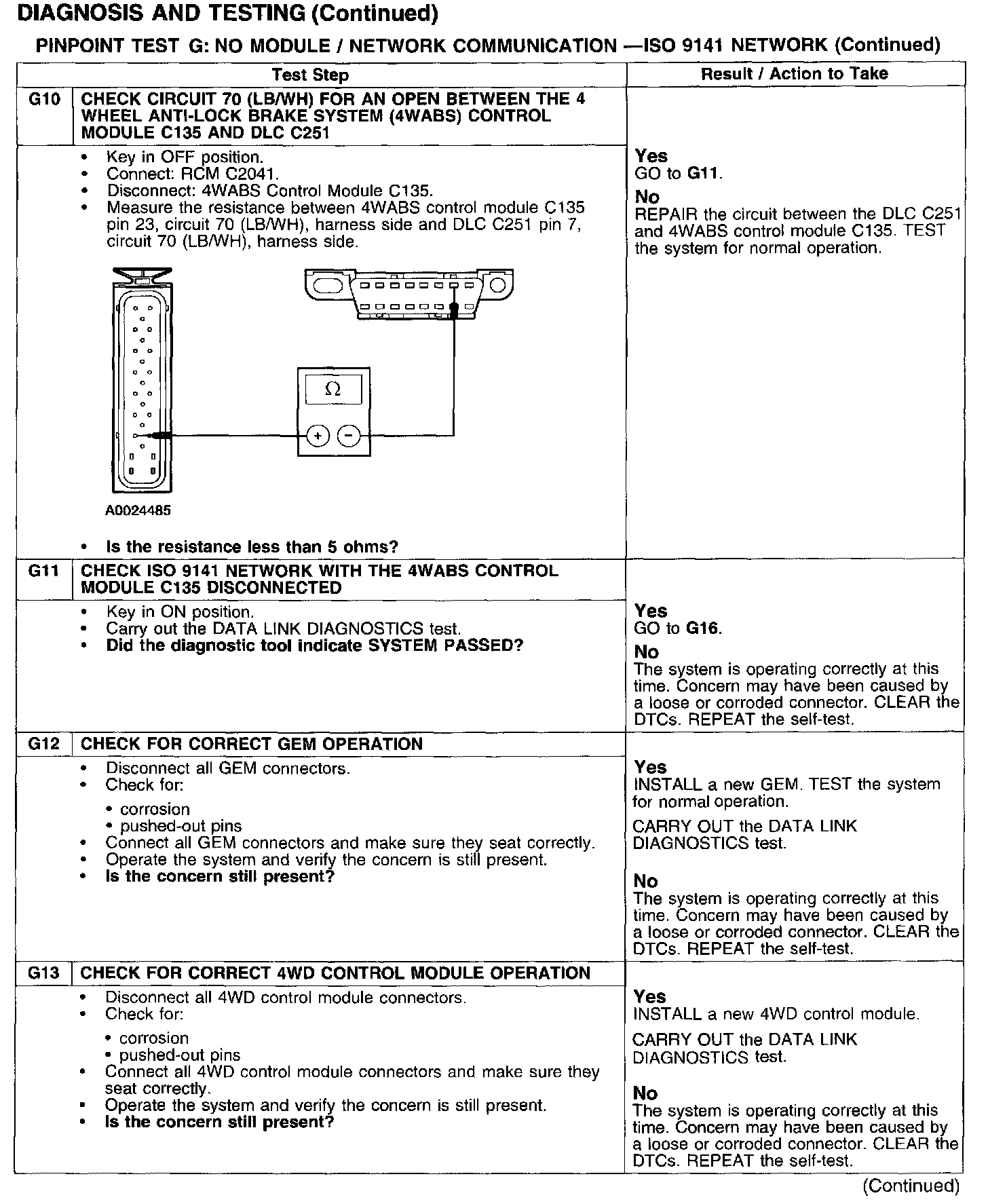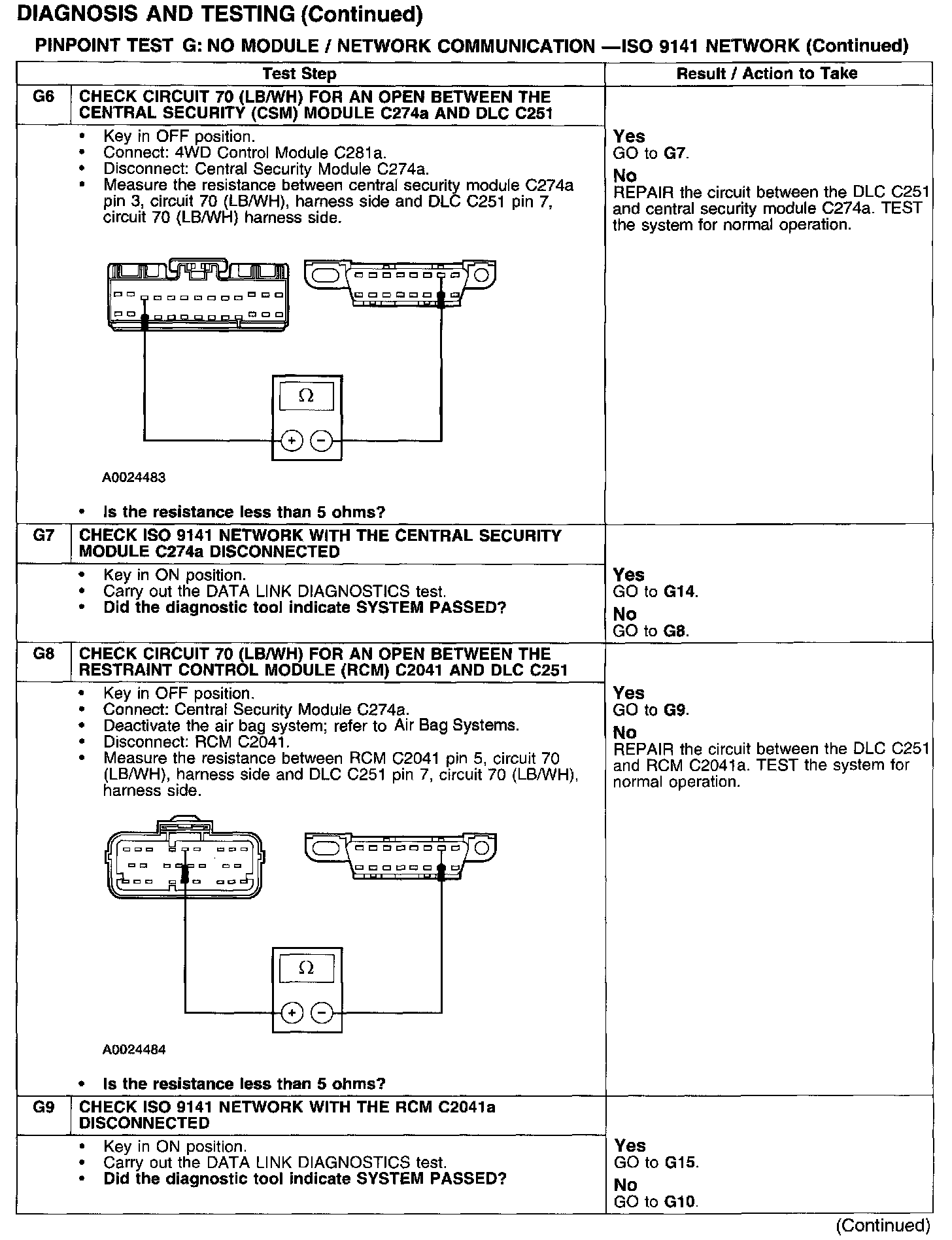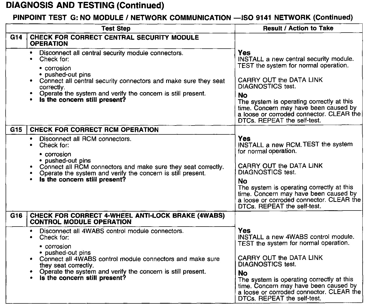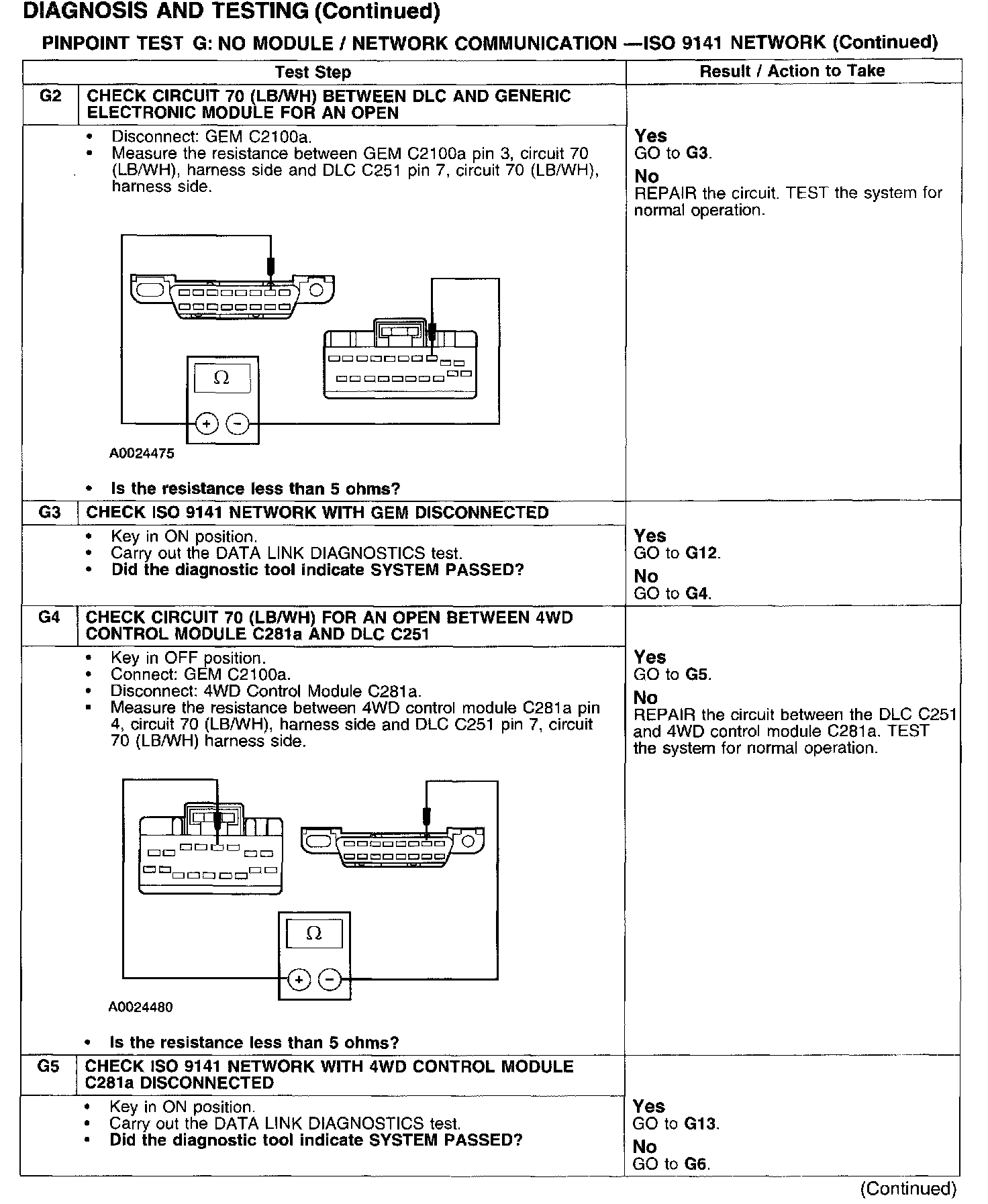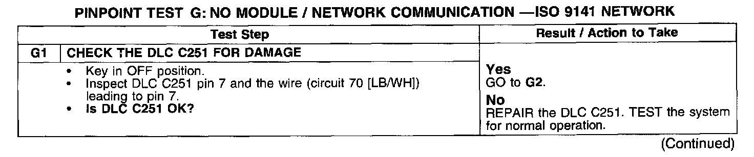 PINPOINT TEST G: NO MODULE / NETWORK COMMUNICATION - ISO 9141 NETWORK