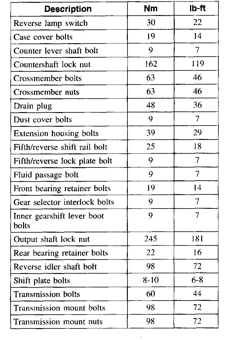 Torque Specifications