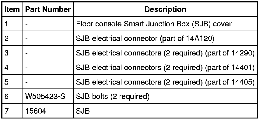 3. Remove the floor console SJB cover.