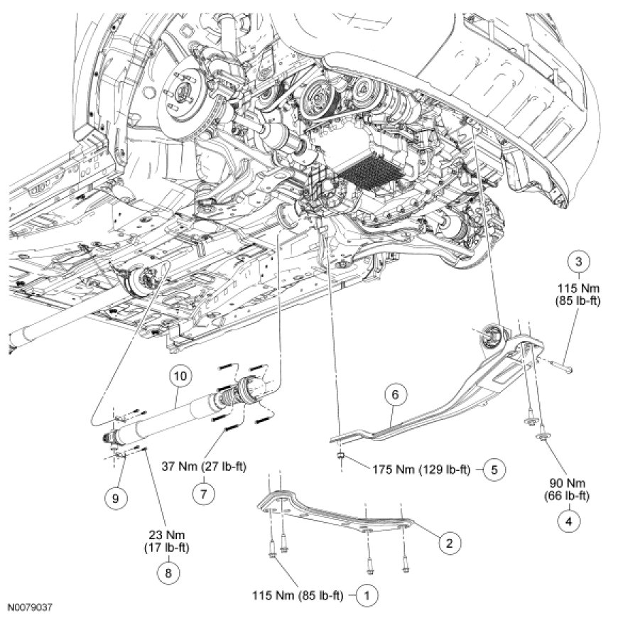 8. Remove the exhaust flexible pipe (2.3L) or the dual converter Y-pipe (3.0L). For additional information, refer to Exhaust System &/or Catalytic Converter.