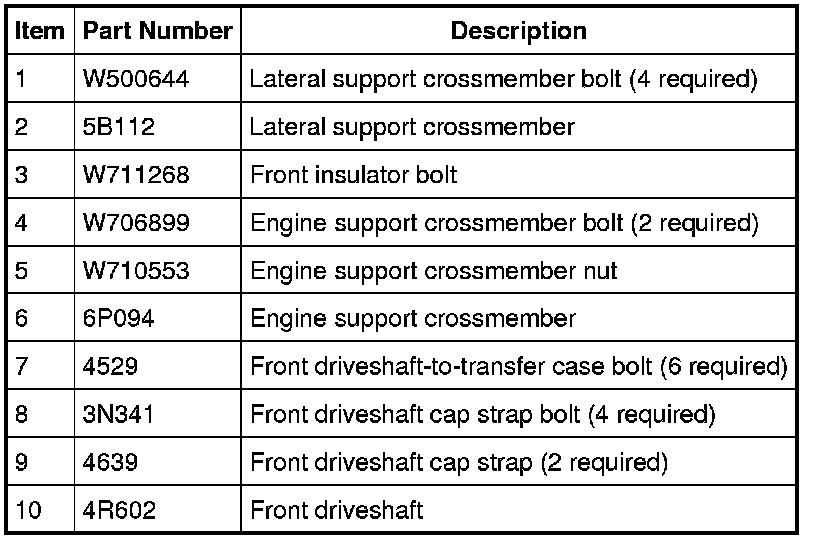 - Remove the 4 U-joint cap strap bolts and 2 cap straps and remove the front driveshaft. Discard the U-joint cap strap bolts and cap straps.