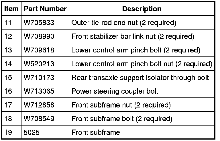 NOTICE: Suspension and subframe fasteners are critical parts because they affect performance of vital parts and systems and their failure can result in major service expense. A new part with the same part number must be installed if installation becomes necessary. Do not use a replacement part of lesser quality or substitute design. Torque values must be used as specified during reassembly to make sure of correct retention of these parts.