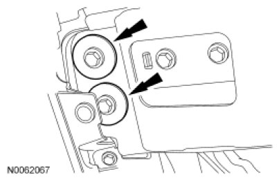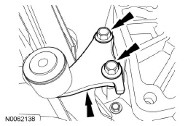 4. Remove the rear transmission insulator and retainer. For additional information, refer to Automatic Transmission/Transaxle &/or Transmission Control Systems.