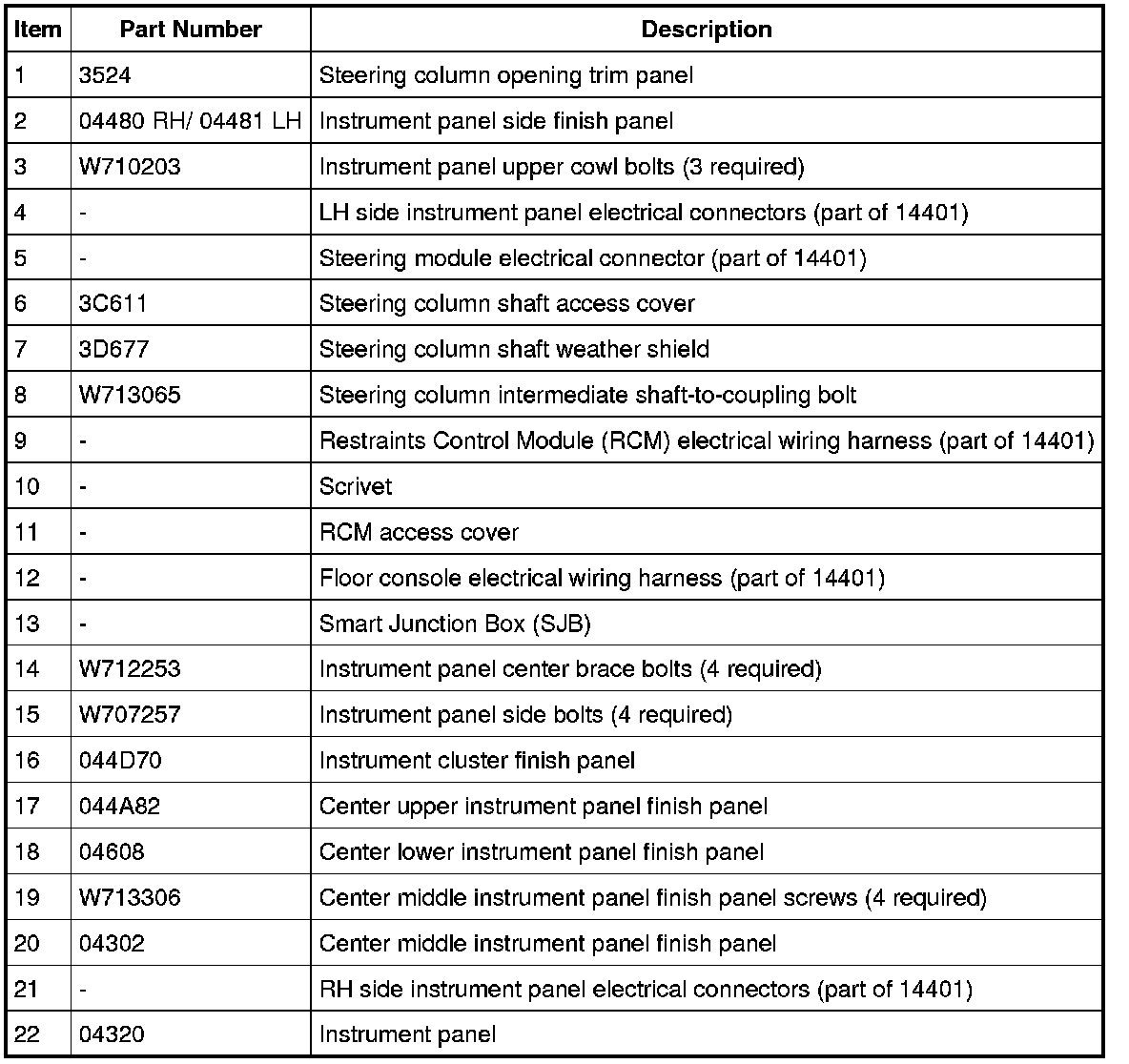 Instrument Panel - Exploded View