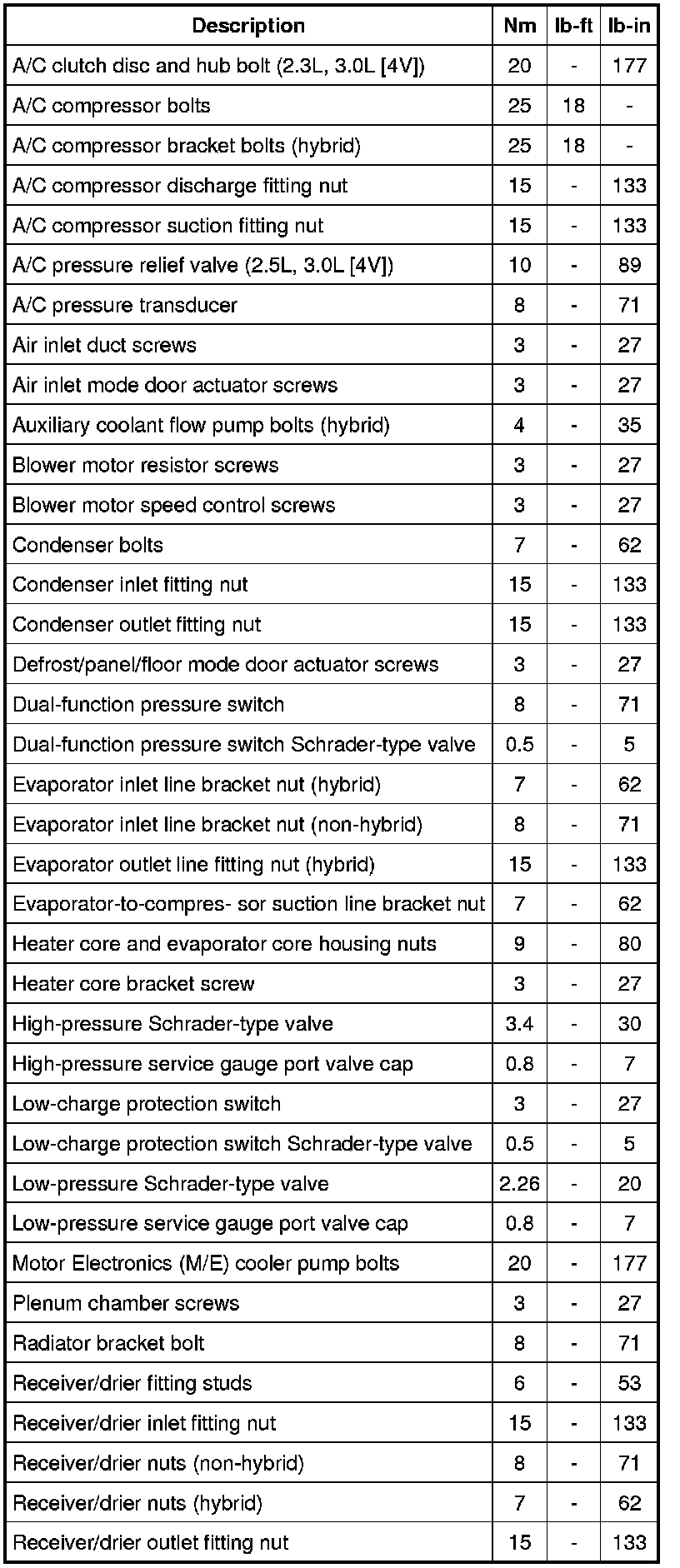 Torque Specifications